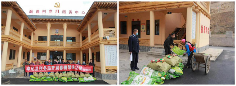 駐村幫扶工作隊與包村干部一道早謀劃、早安排、早動手,提前一周對農戶耕地面積進行統計,精確計算發放有機肥的數量,從3月17號,開始利用一周時間為農戶發放有機肥380噸,全力支持擴大洋芋、油菜種植,為春耕春播做好充足準備。同時,駐村幫扶工作隊還發揮責任擔當,積極聯系卓尼縣稅務局(奤蓋村幫扶單位)向其匯報村春耕計劃,得到了稅務局黨委的高度重視,立即向工作隊劃撥資金采買有機肥、種子等農資產品,并及時向村民發放,給村民們送去了春耕的“及時雨”。