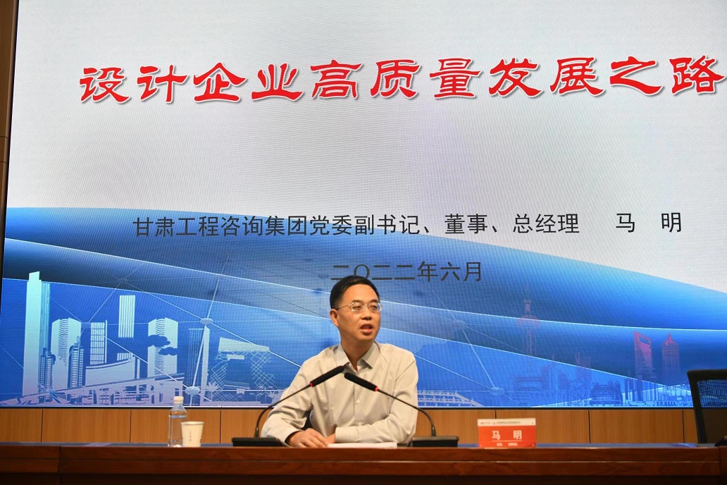 6月9日,在甘肅省建筑設計研究院有限公司喜迎建院70周年華誕之際,集團公司黨委副書記、總經(jīng)理馬明受邀以《設計企業(yè)高質(zhì)量發(fā)展之路》為題作專題講座。集團公司經(jīng)理層成員、各部門主要負責人及兄弟單位主要領導,建筑設計院領導班子成員、全體中層干部聆聽講座。