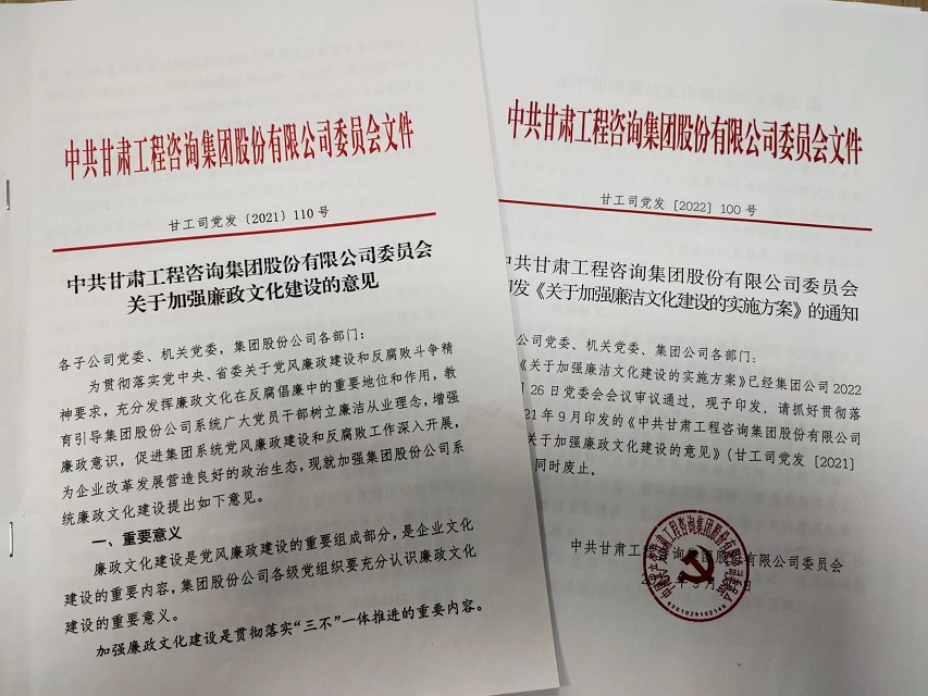 甘肅工程咨詢集團深入推進廉潔文化建設持續增強“不想腐”的思想自覺