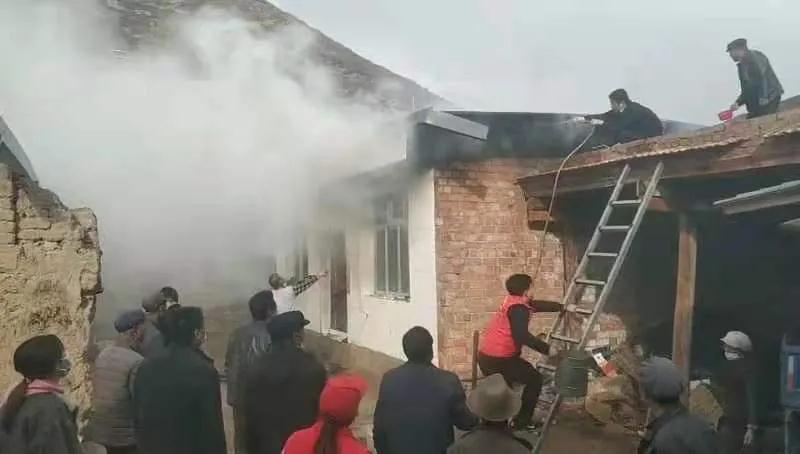聽到村民們的呼救聲,正在村口疫情防控監(jiān)測點值守的幫扶工作隊隊員、包村干部與鎮(zhèn)領(lǐng)導(dǎo)、村“兩委”干部及志愿者一起,第一時間沖向了火災(zāi)現(xiàn)場,實施開展撲救工作。現(xiàn)場火勢兇猛,盡管眾人一起用水傾澆,卻仍未阻止火勢蔓延。瞬間,屋頂?shù)臋M梁也燒著了,發(fā)出噼啪的響聲,房頂隱約在搖晃,可大家依然奮不顧身地救火,甚至有人沖上了危險的屋頂。