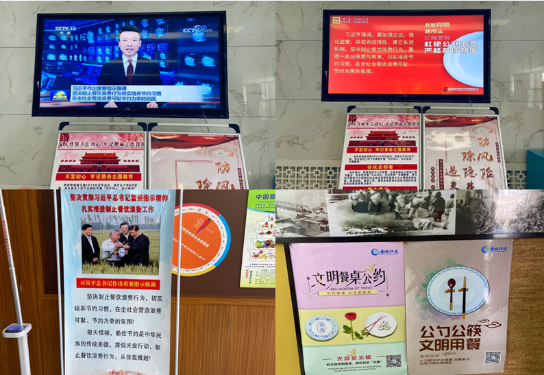 通過在公司一樓大廳的LED屏上滾動播放習(xí)近平總書記提出杜絕餐飲浪費(fèi)的重要指示、制作播放關(guān)于節(jié)約用餐、文明用餐的PPT、在宣傳欄和食堂醒目位置張貼宣傳圖片和條幅標(biāo)語等,遏制“舌尖上的浪費(fèi)”,消除“剩宴”,最大限度減少餐飲浪費(fèi)。廣大黨員干部還簽訂《杜絕餐飲浪費(fèi)承諾書》,充分發(fā)揮黨員表率作用,以黨員帶動群眾,在公司范圍內(nèi)營造浪費(fèi)可恥、節(jié)約為榮的良好氛圍。