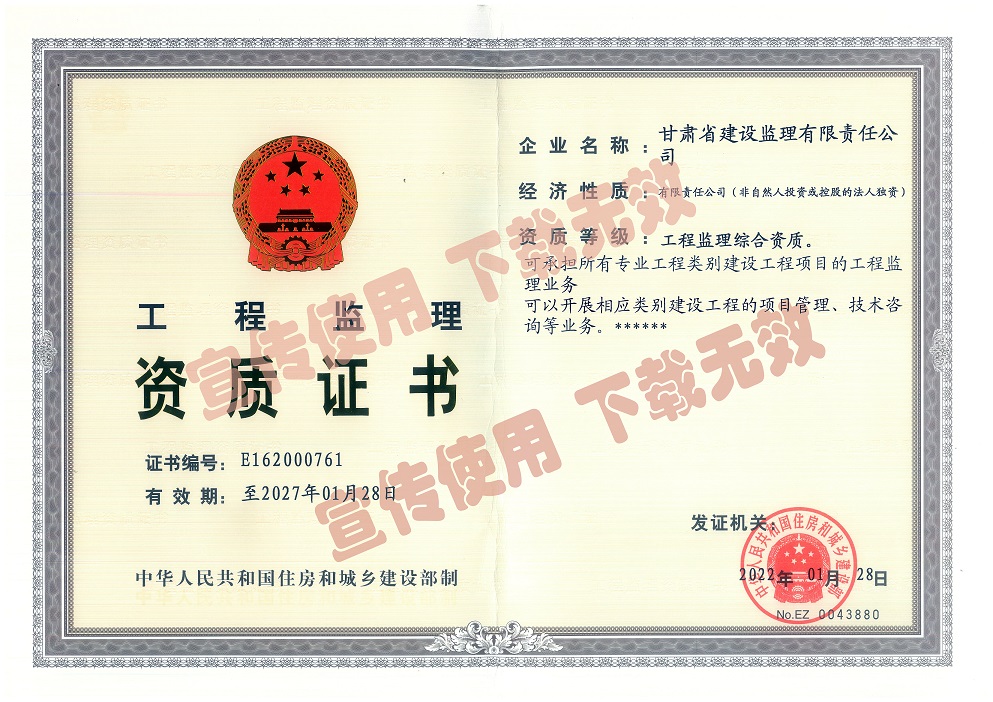 千淘萬漉雖辛苦,吹盡黃沙始到金。2月17日,甘肅省建設監理有限責任公司正式取得工程監理綜合資質,成為甘肅省本土唯一擁有綜合資質的監理企業。
