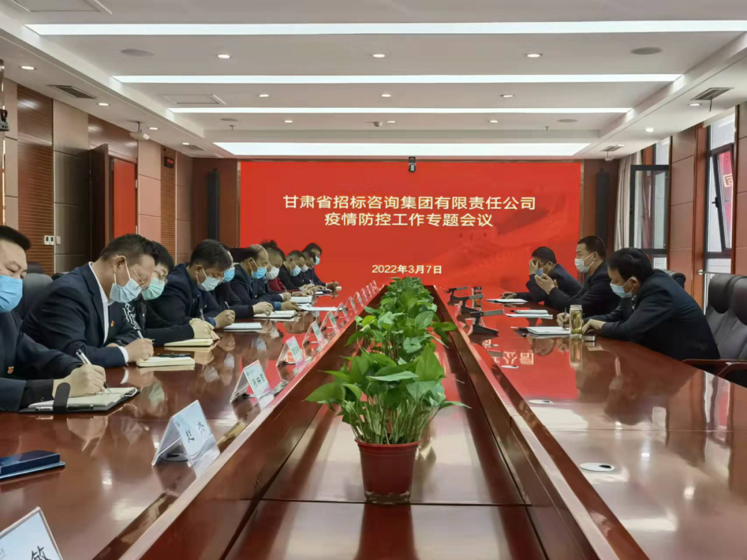 3月7日下午,甘肅省招標(biāo)咨詢集團(tuán)有限責(zé)任公司召開專題會議,研究部署新冠疫情防控工作。招標(biāo)咨詢集團(tuán)經(jīng)理層領(lǐng)導(dǎo)、各子公司、機(jī)關(guān)部室負(fù)責(zé)人參加會議。