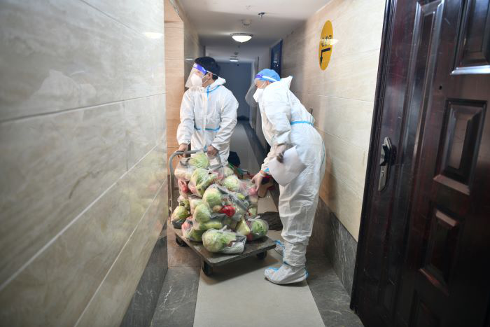 近日,根據疫情防控要求,建筑設計院協同轄區街道防疫部門對職工家屬區個別單元進行封控管理,樓內全體人員就地隔離觀察。為了保障職工群眾居家隔離期間的正常生活,建筑設計院及時采購新鮮蔬菜,送菜上門,將企業的關懷與溫暖送到職工的手中。