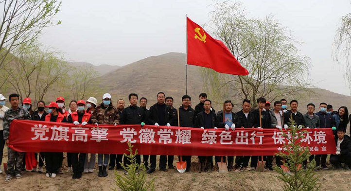 2022年4月,根據王旗鎮安排,駐村幫扶工作隊員會同其他鎮村干部組織群眾數十人,在洮河西岸磨溝段開展了以“黨旗高擎、黨徽常耀、綠色出行、保護環境”為主題的義務植樹活動,共栽下4000余棵松樹苗,掀起了植樹造林的熱潮。