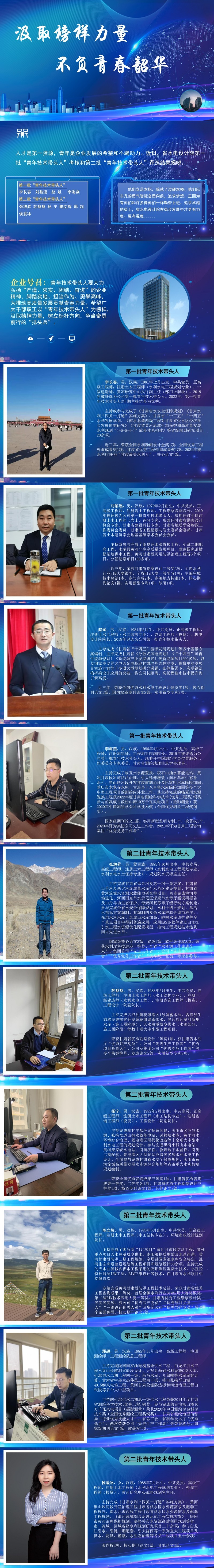 被評為青年技術(shù)帶頭人的10名青年員工,他們立足本職,一步一個腳印,苦練技能,實干在前,以超群的專業(yè)能力展現(xiàn)青年的擔(dān)當(dāng)作為;他們以非凡的勇氣智慧奮勇向前,追逐夢想,彰顯新時代技能人才的“硬核”力量;他們是青年群體的排頭兵,是專業(yè)領(lǐng)域的攀登者,是“傳幫帶”的助力人。正因為有他們和許多像他們一樣勤奮上進(jìn)、追求卓越的員工,省水電設(shè)計院在穩(wěn)步發(fā)展中才更有力度、更有溫度......