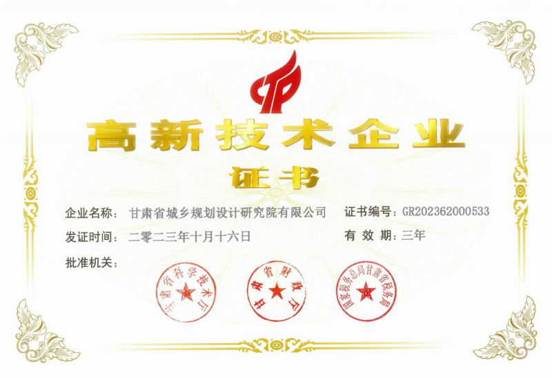 近日,經(jīng)過(guò)嚴(yán)格的審批程序,省規(guī)劃設(shè)計(jì)院申報(bào)的國(guó)家高新技術(shù)企業(yè)最終通過(guò)認(rèn)定并獲得由省科學(xué)技術(shù)廳、省財(cái)政廳和國(guó)家稅務(wù)總局甘肅省稅務(wù)局聯(lián)合頒發(fā)的“高新技術(shù)企業(yè)證書(shū)”(證書(shū)編號(hào):GR202362000533)。