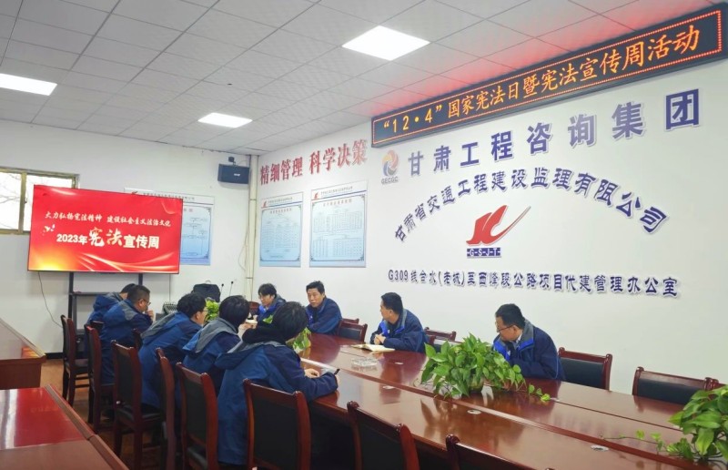 組織機(jī)關(guān)全體干部職工集體觀看《法護(hù)一生》宣傳片。各項(xiàng)目機(jī)構(gòu)緊密結(jié)合項(xiàng)目實(shí)際,通過擺放宣傳展板、發(fā)放宣傳手冊、開展憲法宣講等宣傳形式,向干部職工宣傳憲法及與群眾生產(chǎn)生活密切相關(guān)的法律法規(guī)知識。